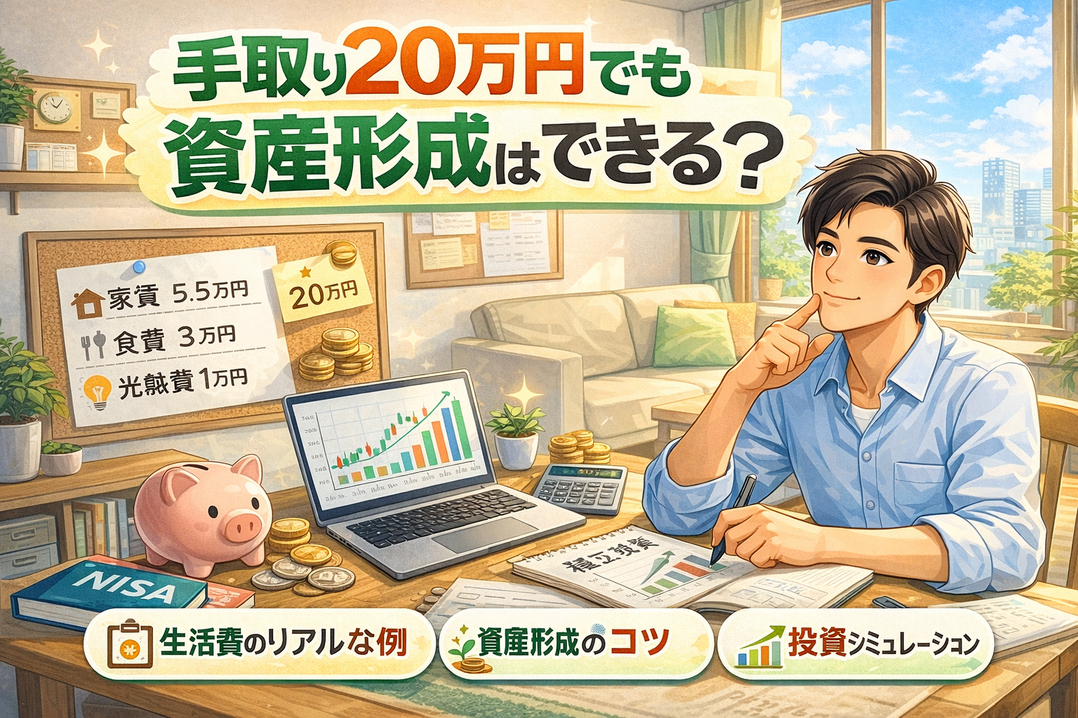 この記事では、実際の一人暮らしの家計例をもとに、手取り20万円でも資産形成ができるのかを具体的に解説していきます。